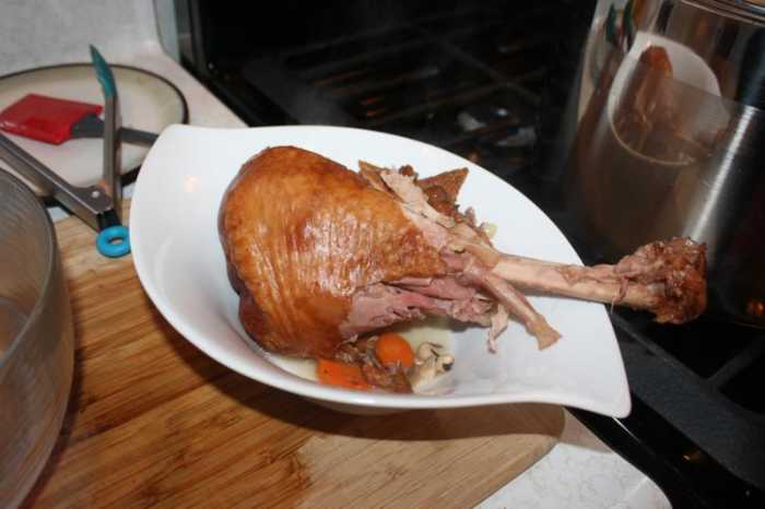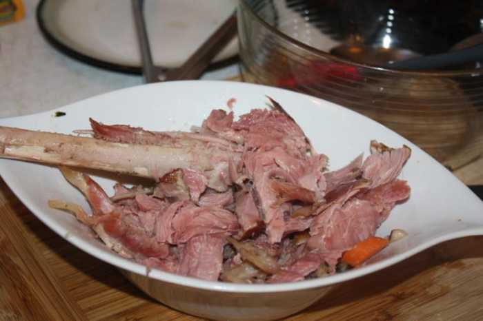 Strip meat from the turkey leg and return both meat and bone to the pot. Simmer for 25–35 minutes, until vegetables are soft and soup has thickened. Avoid over-stirring to prevent the soup from becoming too starchy.