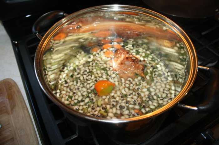 Stir in black eye peas and carrot. Add smoked turkey leg and pour in 10–14 cups water. Add scotch bonnet pepper, salt, and black pepper. Bring to a boil, then reduce to a simmer.