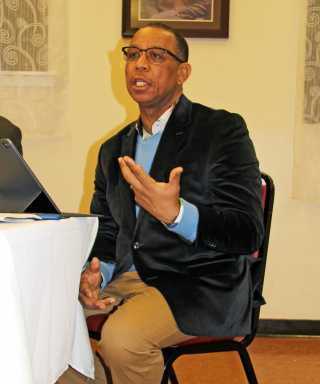 Dr. Peter Bonadie makes a point during a panel discussion, in February 2019, at Trinity Methodist Church on Eastern Parkway, Brooklyn, on the ‘Currency of Freedom’ for Black History Month, organized by the St. Vincent and the Grenadines, Ex-Teachers Association of New York.