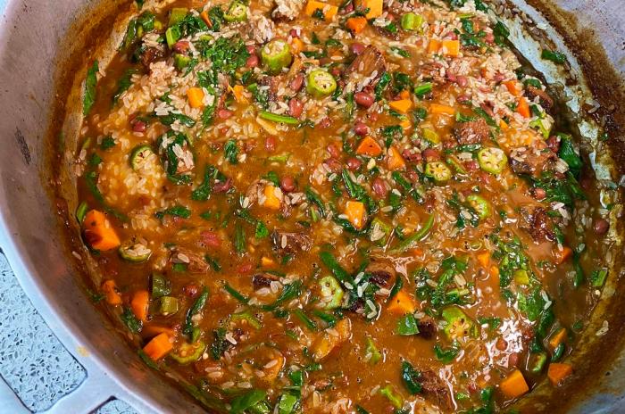 Two years back we kicked off the New Year with my incredibly tasty Cook Up Rice, loaded with chicken, salted pigtail pieces and black eyed peas for the good luck associated with using it at the start of a new year. While you’ll see similarities with that recipe and the beef version we’re about to make, it will also be apparent that I didn’t follow the sort of traditional rules this time.