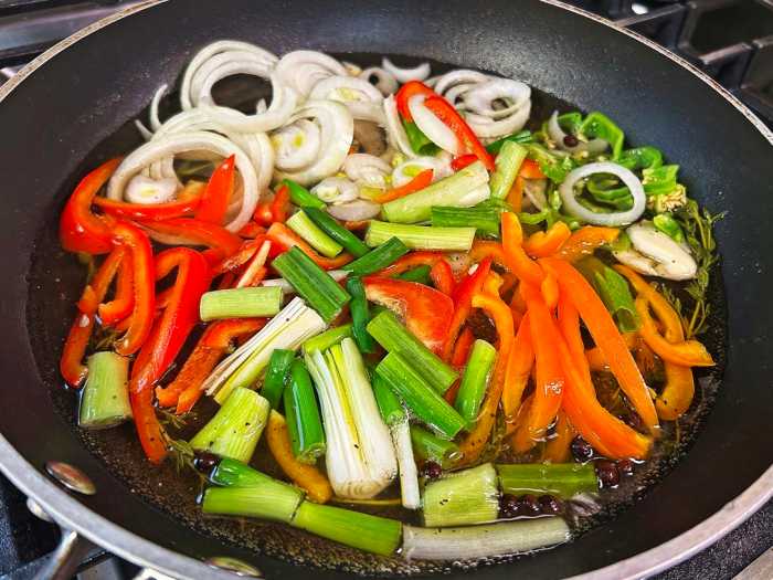 - Prep all the vegetables before starting so the sauce comes together smoothly.