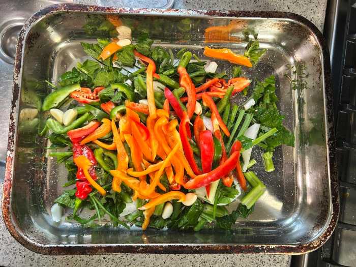 - Bell Peppers – Optional, adding color and sweetness to the roasting pan.
