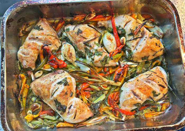 Remove from the oven and let rest a few minutes before serving. This recipe is part of my In Season series, where I highlight ingredients that influence our dinners at home. In this case, the herbs and onions all came from my garden.