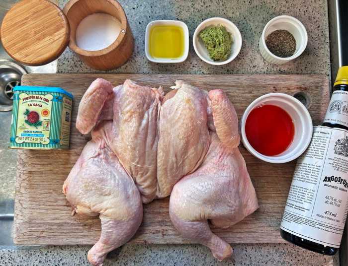 Whole Chicken The foundation of the dish. Spatchcocking the chicken allows it to cook more evenly while helping the skin roast beautifully.