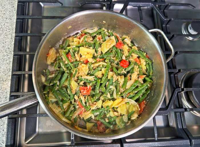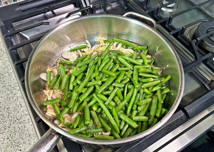 Add the string beans and stir well to coat with the seasoned base.