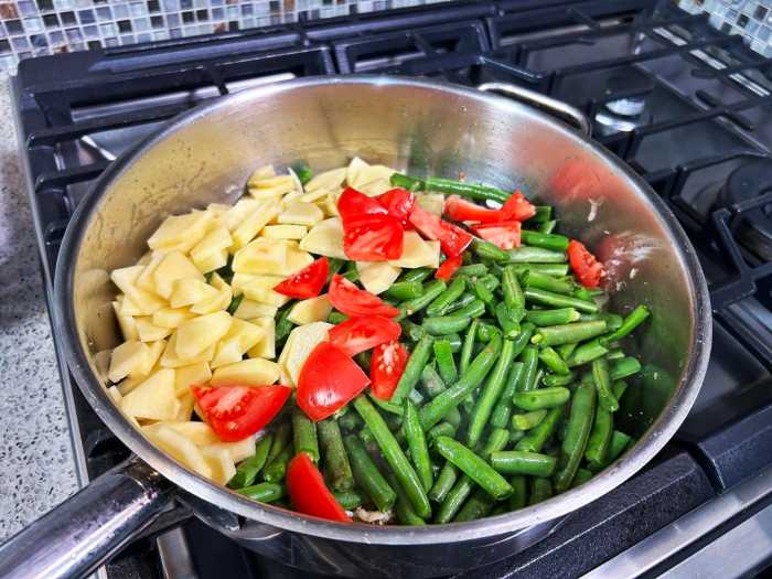 - 1 1/2 lbs string beans cut into 1-inch pieces