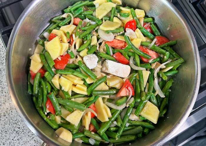 This String Beans With Potato And Salted Cod recipe is built on that same idea of simple Caribbean cooking that feeds more people without sacrificing flavor. Thinly sliced potato adds body to the dish, while salted cod brings depth and that unmistakable savory note many of us grew up with. A little coconut cream rounds everything out, turning everyday ingredients into a comforting pot of food.