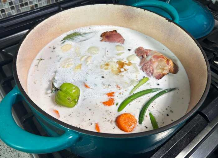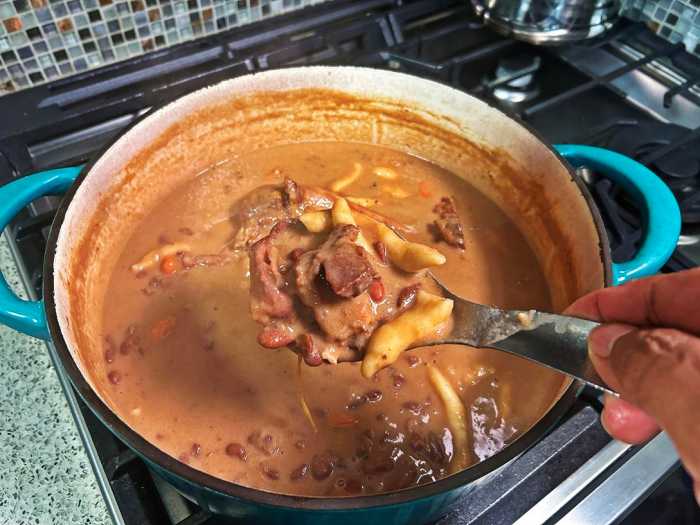 In this version, I’m using a ham bone saved from our Christmas ham, but you can easily substitute any smoked meat you prefer, such as ham hocks, smoked turkey legs or wings, or smoked ribs. In the previous version I shared, I used salted pigtail, an ingredient deeply rooted in Caribbean cooking since the days of slavery, which was pre-boiled before being added to the pot.