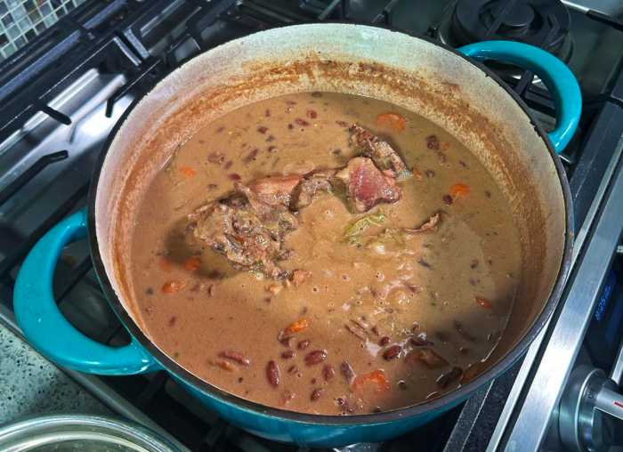 Place the ham bone into a deep soup pot along with the soaked kidney beans.