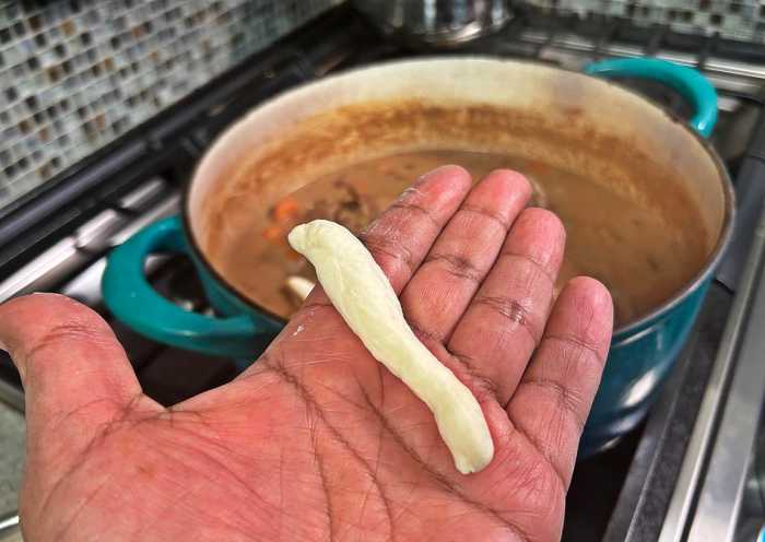 Add the dumplings to the pot along with additional water if needed (it will thicken futher, so I recommend adding at least another cup). Continue cooking for another 20–30 minutes. At this stage, you can remove the scotch bonnet pepper if desired. to control the heat, or break it to release that lovely Caribbean heat to the dish.